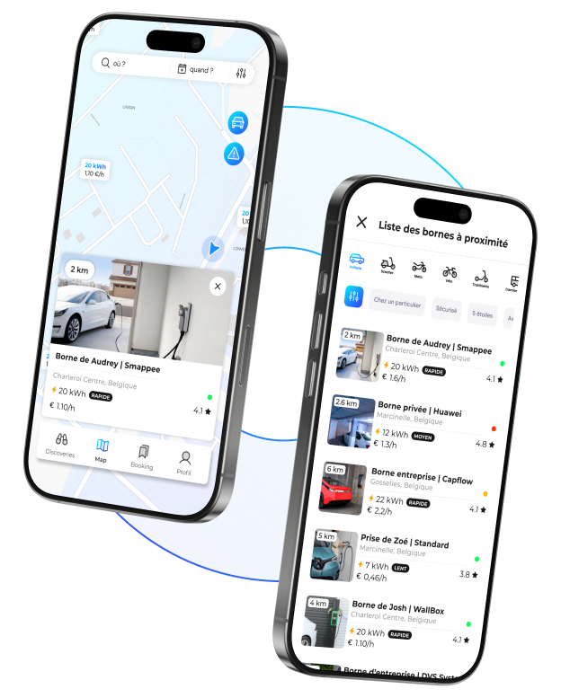 Rechargez instantanément à toutes les bornes de Belgique, même chez d’autres personnes et à moindre coût !